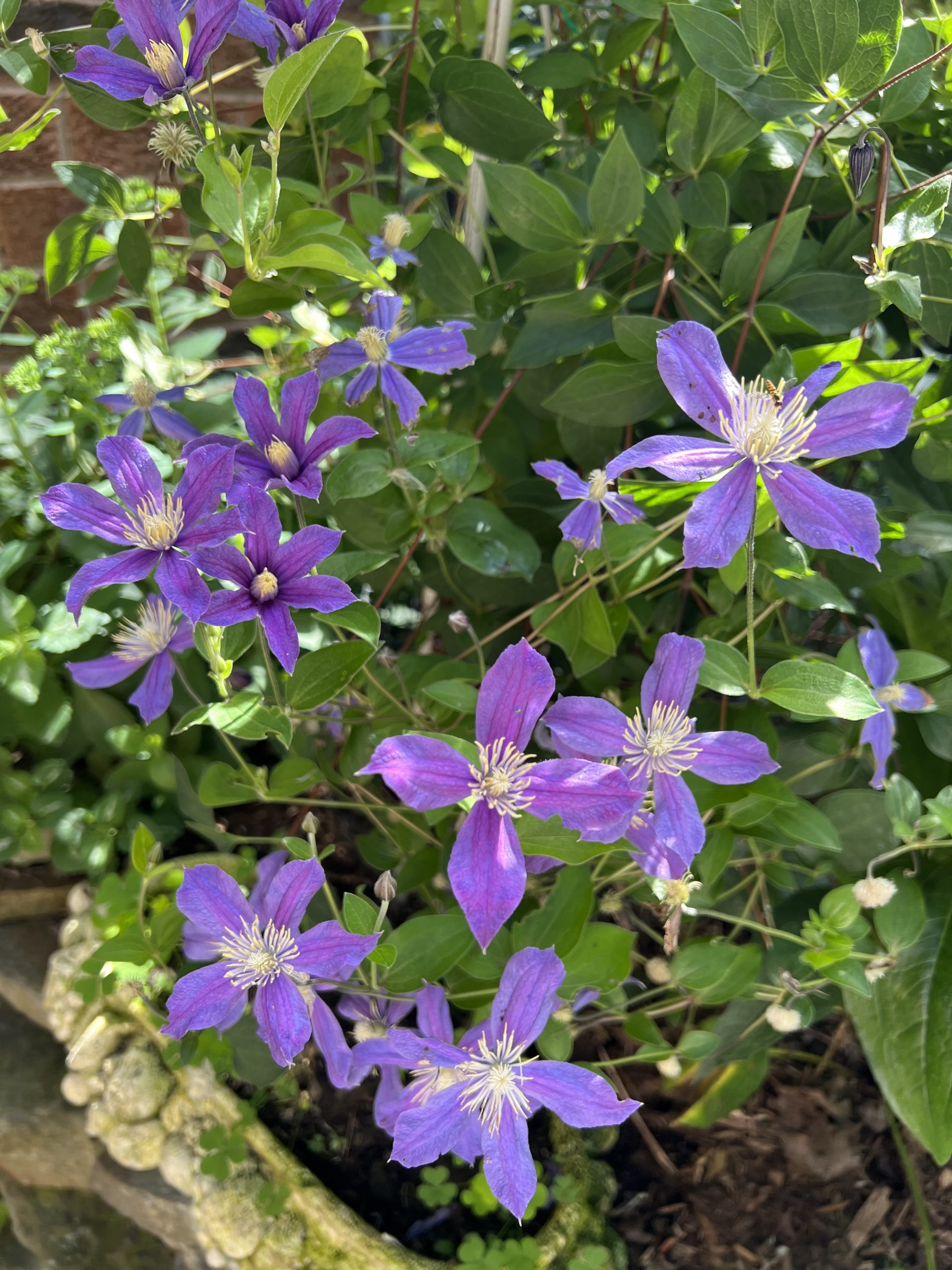 With its non clinging stems, this variety is more of a rambler but will climb with a little help. Its rosy-blue slightly nodding flowers are both abundant and attractive. Arabella excels growing through small shrubs or even as a ground cover. Pruning group C