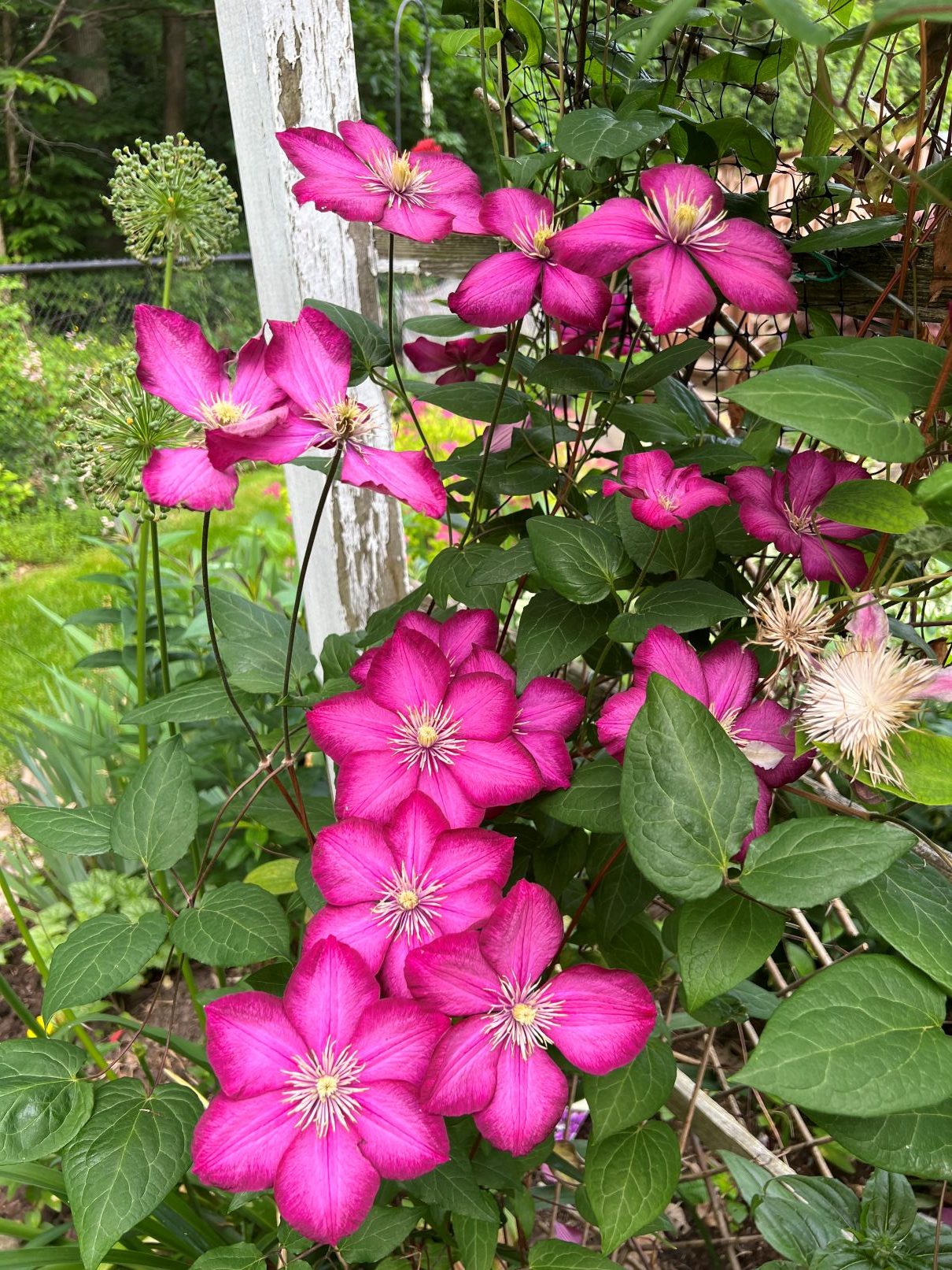 About Ville De Lyon A favorite since the turn of the century. The flower is quite unique; the tepals have a carmine edge that fades into an attractive silver sheen and large yellow stamens. The 4-6″ (10-15cm) blooms if pruned hard, or 5-7″ (12-18cm) blooms if pruned lightly, are produced from June through September on […]